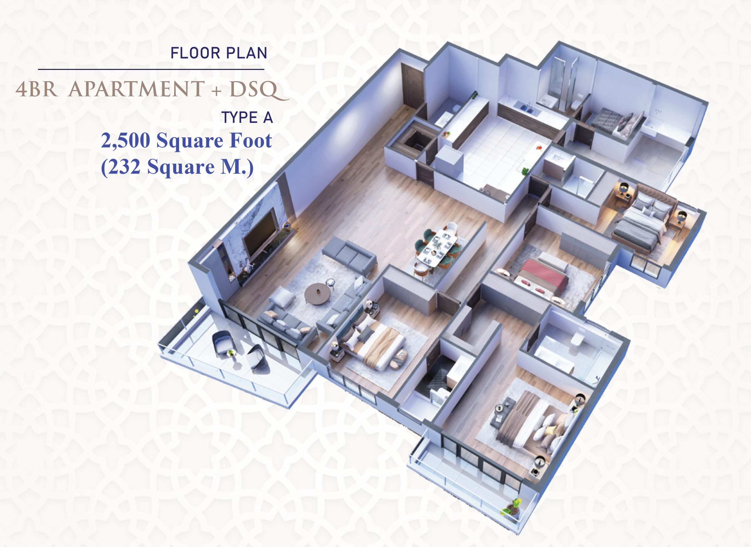 The 4-bedroom apartment at Gazebo Apartments offers 223 SQM of refined living space, perfect for those seeking both luxury and functionality. Each unit includes a Domestic Staff Quarters (DSQ) for added convenience, ensuring privacy and comfort for your household.